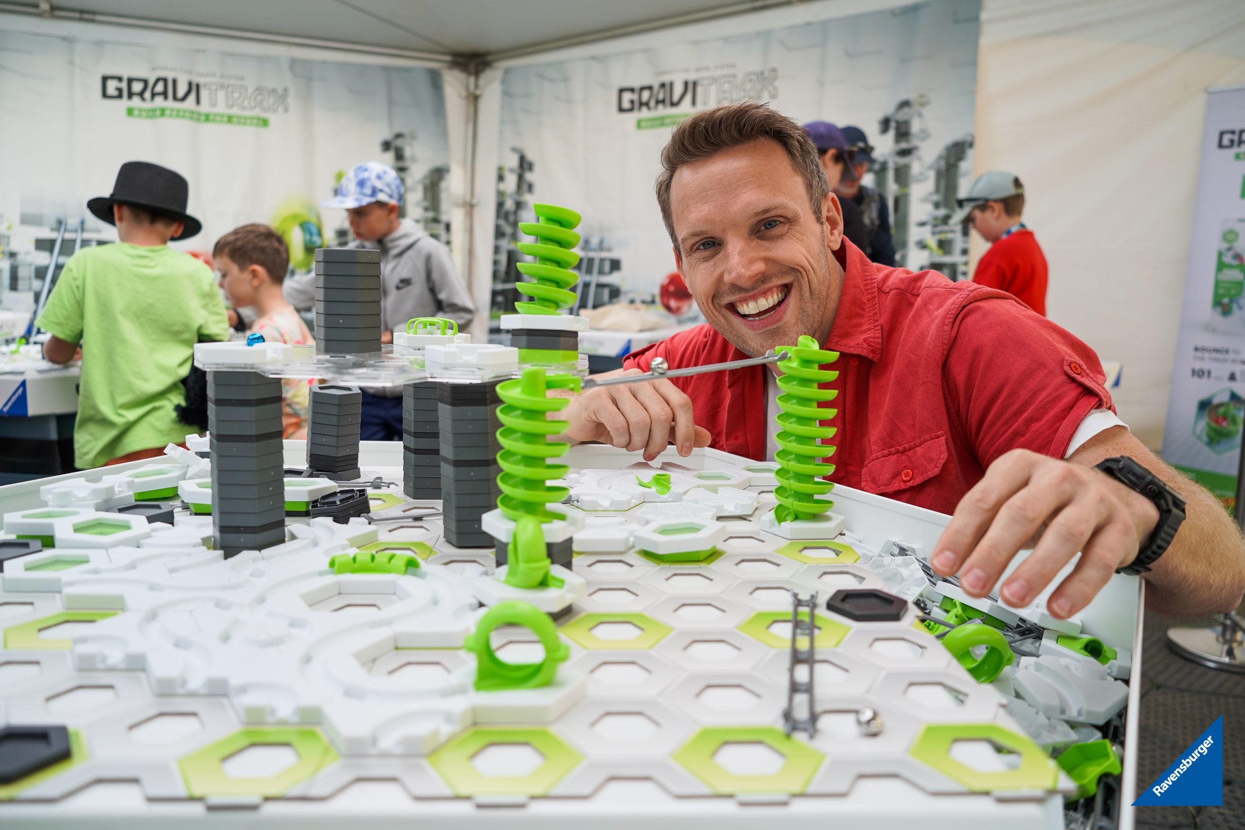 Thanks to my connections in the toy industry, I was invited by Gravitrax to direct and document the incredible experiences families were having in the STEM Zone – with a special focus on the Gravitrax sessions, hosted by renowned science presenter Gregg Foot.